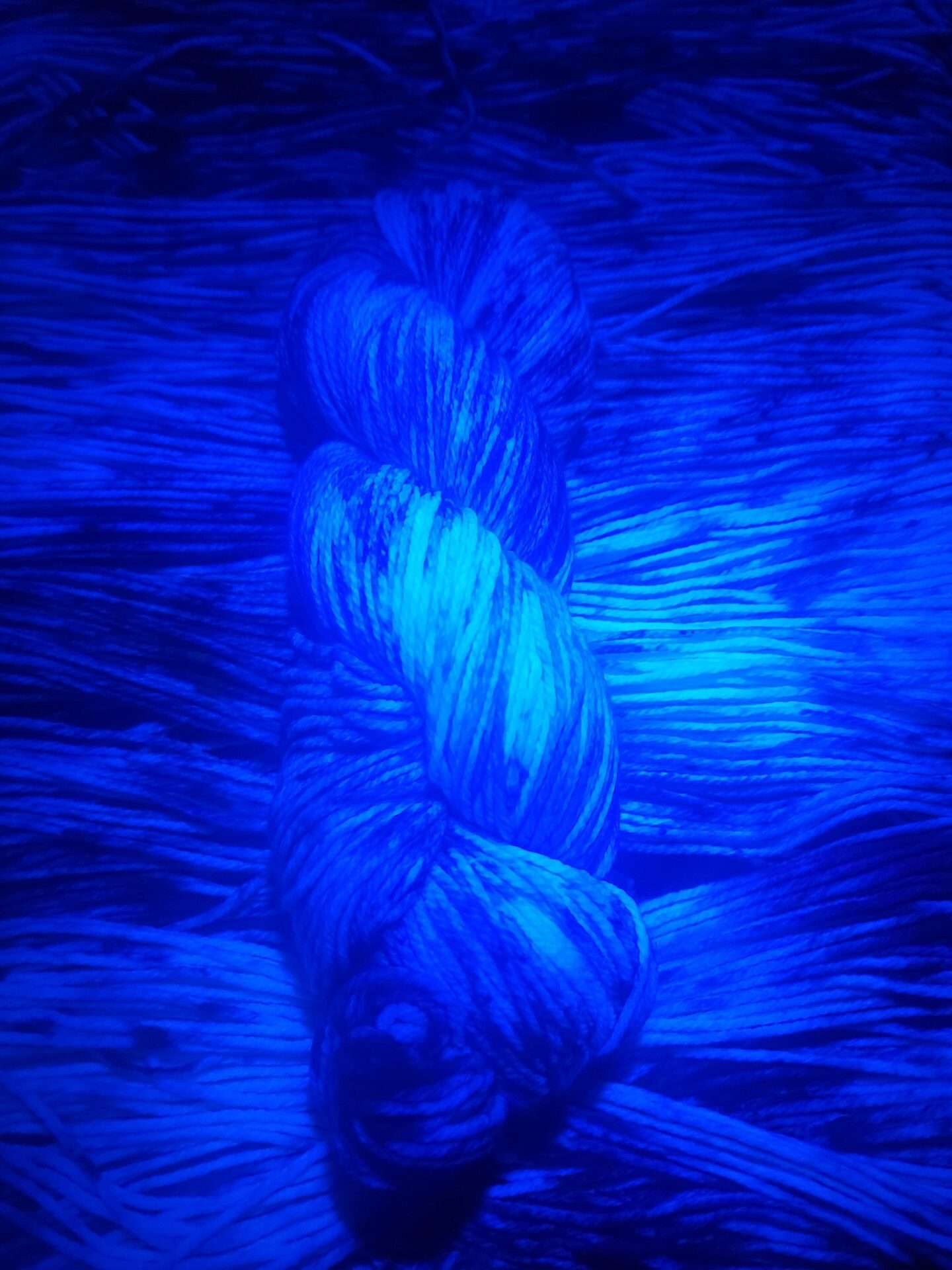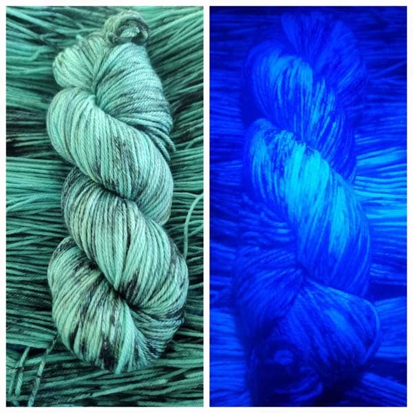 A pale, green-blue color speckled with black and grey gives off a ghostly pallor, while bursting to eerie light under blacklight.