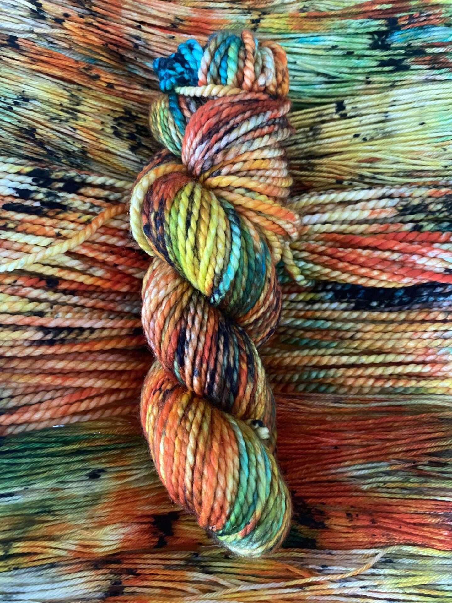 While each color has its own specific recipe, every skein is individually hand dyed, which could cause variations between skeins in distribution. If using more than one skein in a product, we recommend alternating skeins