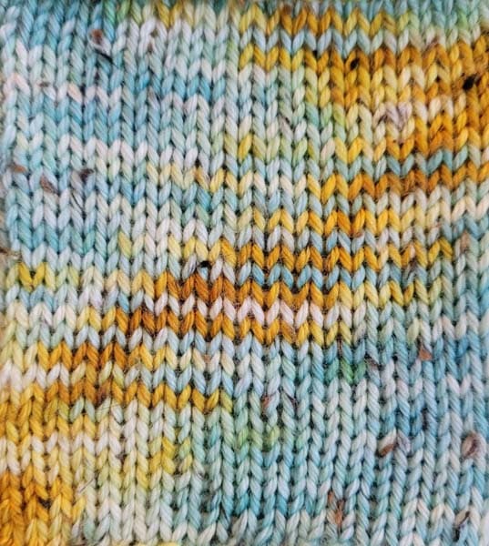 While each color has its own specific recipe, every skein is individually hand dyed, which could cause variations between skeins in distribution. If using more than one skein in a product, we recommend alternating skeins