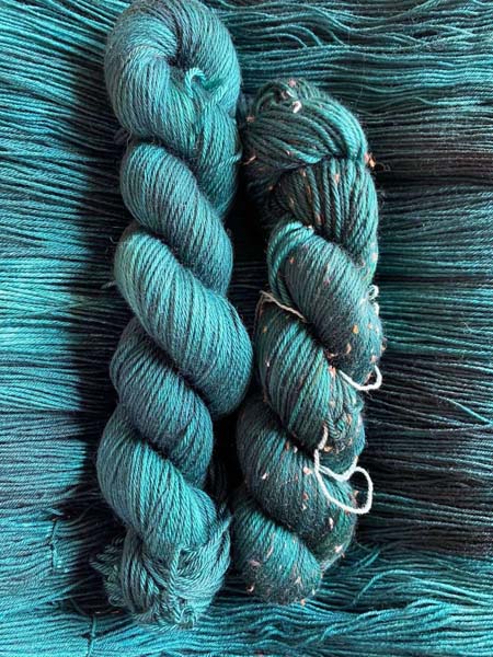 While each color has its own specific recipe, every skein is individually hand dyed, which could cause variations between skeins in distribution. If using more than one skein in a product, we recommend alternating skeins.