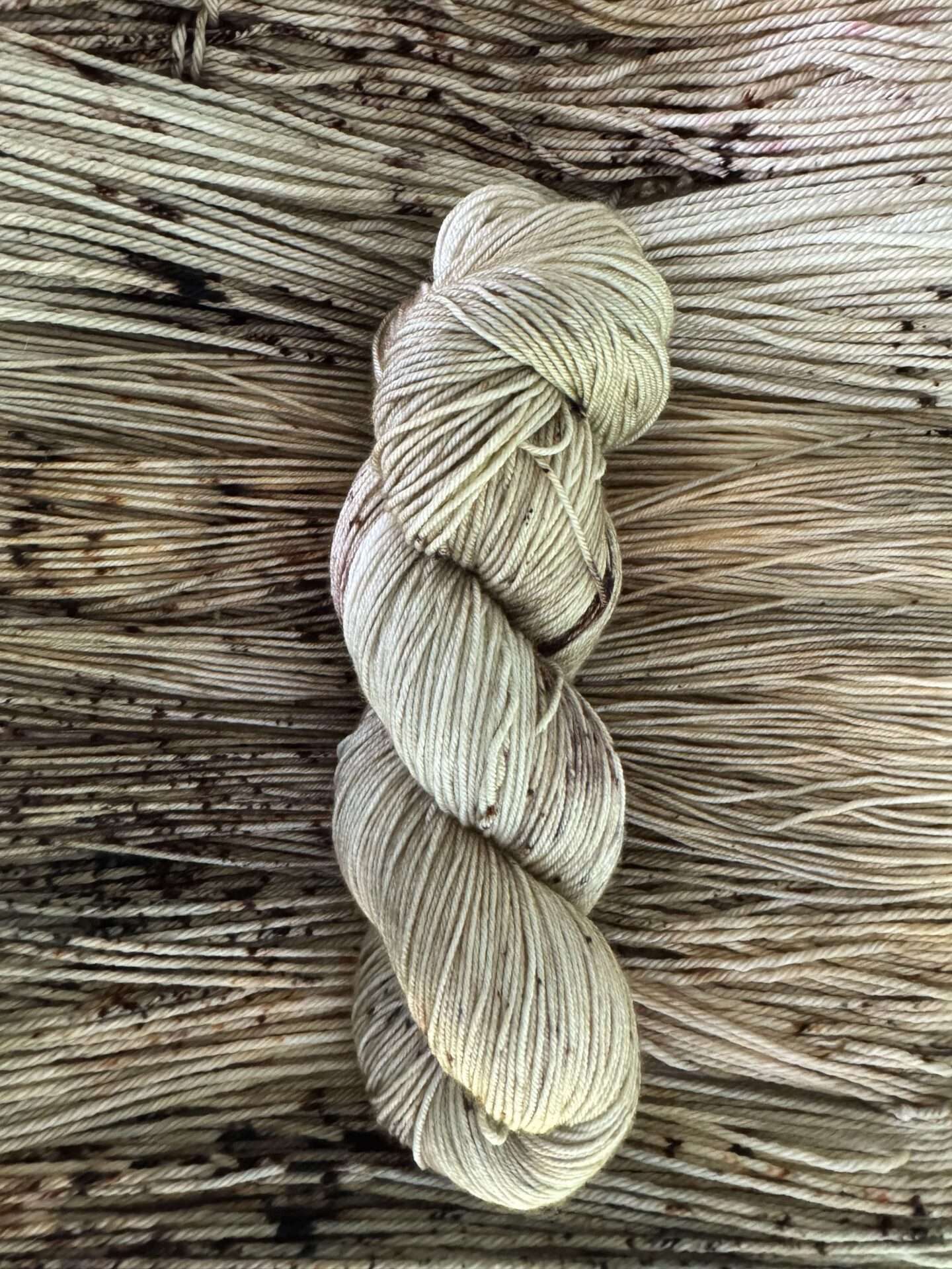 Sheep to Shawl is a soft brown shade, dappled with deep chocolate and chestnut brown, with a multicolored speckle added for flair!