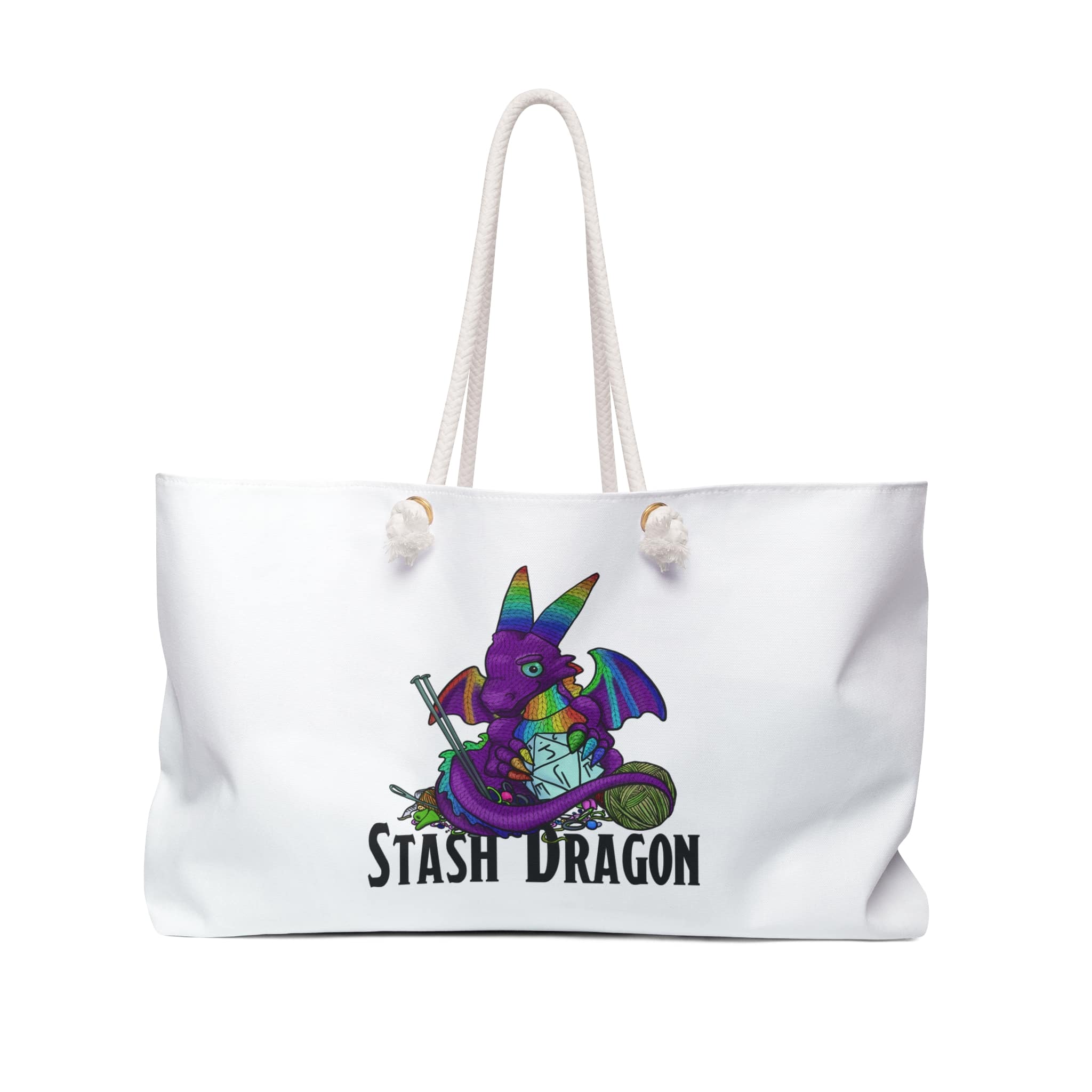 Our oversized Weekender Tote is perfect for your next fiber outing, or your everyday use. The wide-mouthed, durable bag holds a generous amount of personal items and is easily held by its thick rope handles.